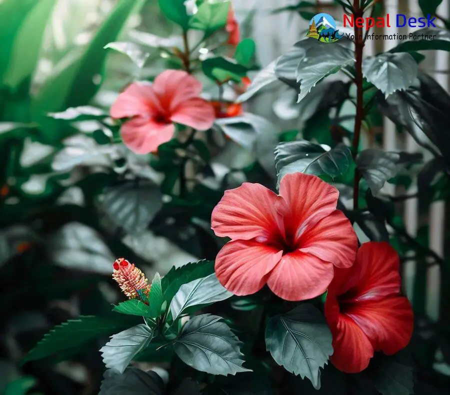 The hibiscus is a well-known and widely cultivated flowering plant found in Nepal. Hibiscus flowers are renowned for their vibrant and attractive blooms, which come in a range of colors such as red, pink, yellow, and white. In Nepal, hibiscus flowers are often used for decorative purposes, as well as in traditional practices and rituals.