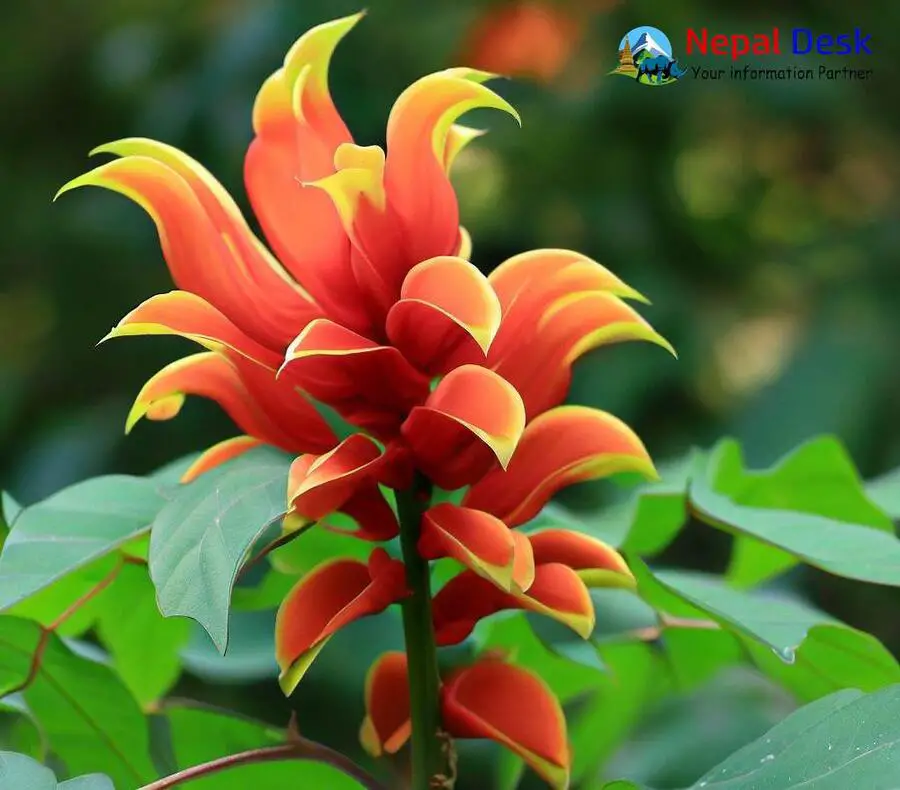 Referred to as the "Flame of the Forest" due to its spectacular display of bright red or orange flowers that resemble flames Palash is a deciduous tree species in the tropical and sub tropical climate native to South Asia, including Nepal. The tree's leaves are pinnate, with numerous leaflets that create a dense and lush canopy. It is valued for its ornamental beauty and cultural significance, often featuring in traditional festivals and ceremonies.